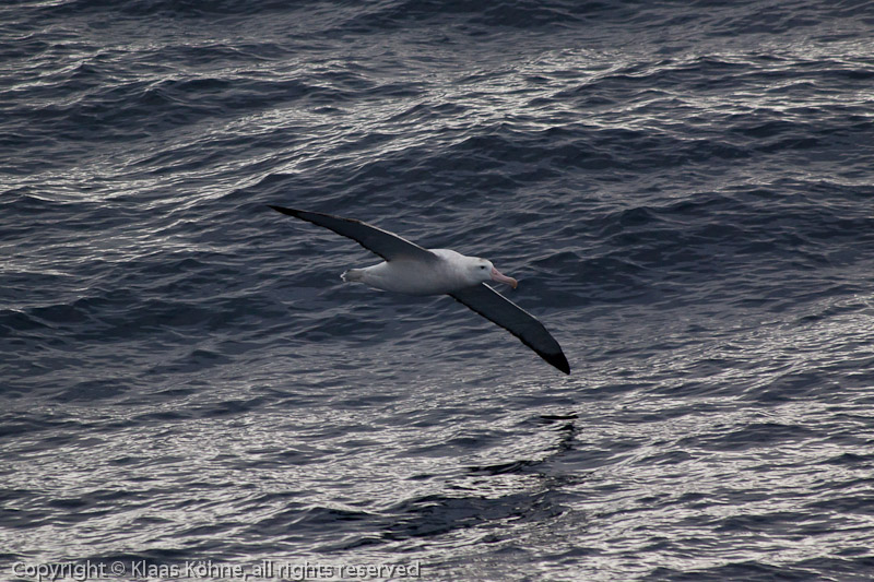 Wanderalbatros (Diomedea exulans) beim Segelflug in der Drake Passage am frühen Abend.