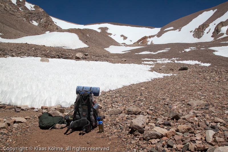 "Cuesta Blanca" auf 4300m. Ein Teil des Gepäcks bleibt hier.