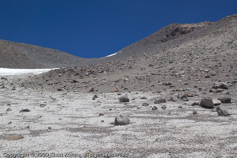 Irgendwann ist auch das zweite Couloir geschafft. Noch rund 400 Höhenmeter. Klingt wenig, ist aber noch mehr als einmal auf die Spitze des Empire State Building. Langsam kommt der Sattel zwischen Haupt und Südostgipfel näher - sehr langsam!