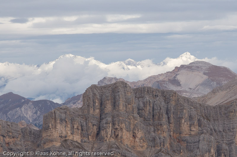 In der Ferne sind einige hohe Schneeberge aufgetaucht, die vermutlich zu den Zillertaler Alpen gehören.