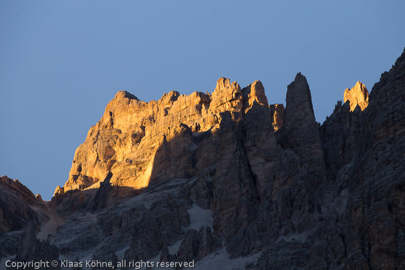 Dann färben sich die oberen Regionen der Tofana golden.