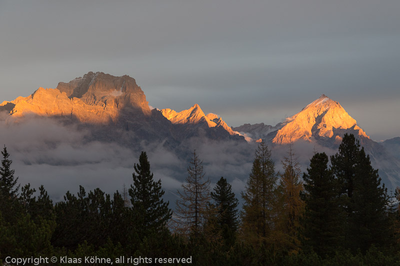 Und Sorapis und Antelao erstrahlen auch nochmal im letzten Licht.