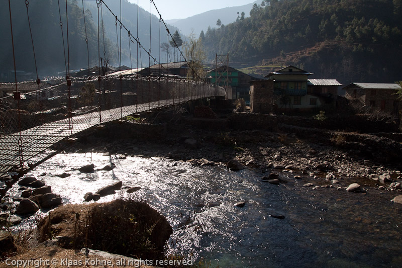 Shivalaya mit der Hängebrücke über den Khimti Khola