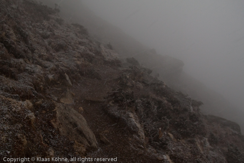 Dann nebelt es sich wieder ein und fängt an zu schneien. Der Mönch in Tengboche hatte recht...