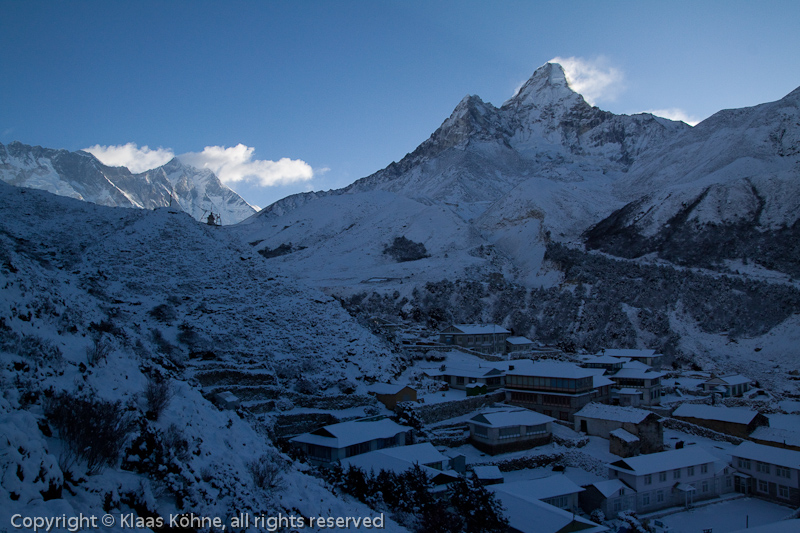 Pangboche und die Ama Dablam - ein Wintermärchen auf 4000m. Und entsprechend frisch um die Nase...