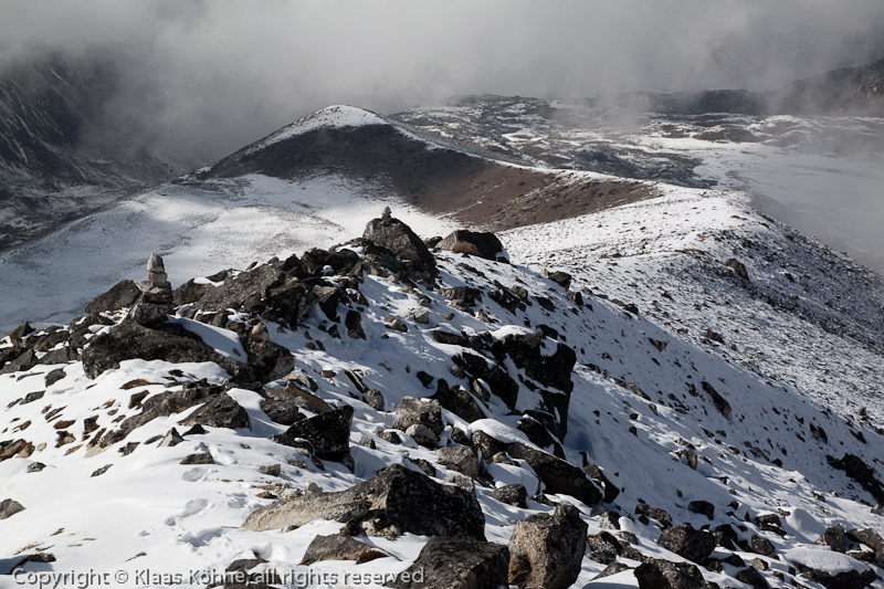 Blick zur langgezogenen Aufstiegsroute. Und da geht´s jetzt auch wieder runter.