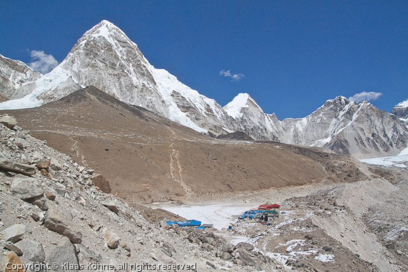 Da ist Gorak Shep! 5170m - vermutlich die höchstgelegenen Lodges weltweit. Die Autobahnen zum Kala Pattar sind unübersehbar, aber ich werde nachher wohl doch zum Everest Base Camp gehen, ist ja irgendwie doch ein Wallfahrtsort. Und morgen dann zum Kala Pattar. PS: Andersrum wäre es vielleicht doch besser gewesen. Den Kala-Pattar-Sunset-View werde ich hoffentlich irgendwann nachholen können...