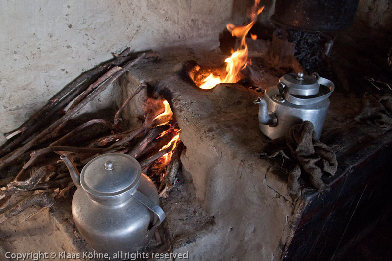 In der Küche ist schon der Ofen angeheizt. Für mich gibt´s wieder Chapati und Huevo frito, dazu einen Milk Tea.