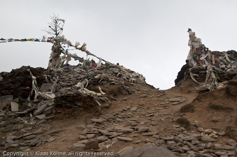 Um 13h11 bin ich an der Lamjura-Passhöhe auf 3530m. Die "zweite Tür" nach Kathmandu öffnet sich. Natürlich muss ich daran denken, wie ich auf dem Hinweg hier mit Cindy aus Holland entlang gegangen bin. Was sie jetzt wohl macht...