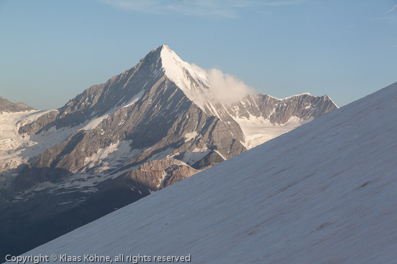 Langsam verschwindet das Weißhorn aus dem Blickfeld. Vom Gipfel aus werden wir es hoffentlich wiedersehen.