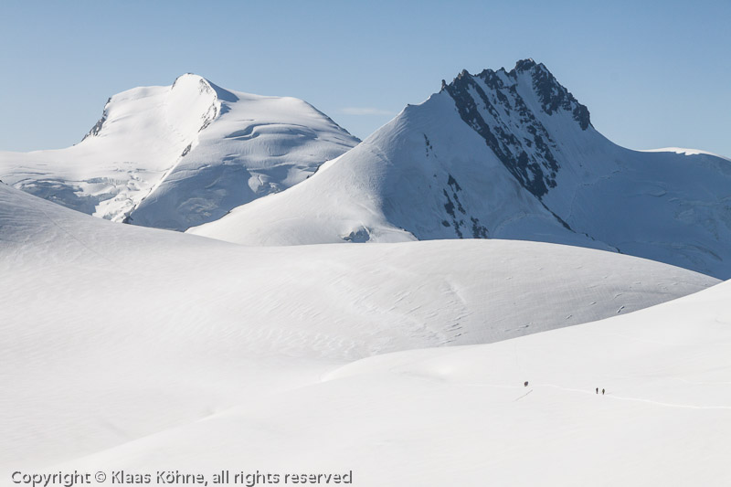 Wir nähern uns der 4000m-Marke. Links das Strahlhorn (4190m), rechts wieder das Rimpfischhorn - ein hübsches Pärchen!