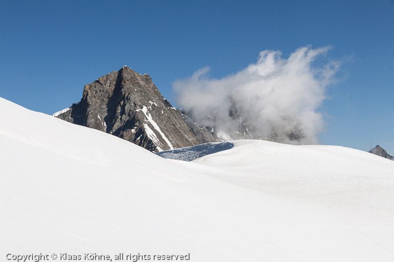 Über dem Gipfelplateau ist das Täschhorn (4491m) aufgetaucht. Weit kann es jetzt eigentlich nicht mehr sein.