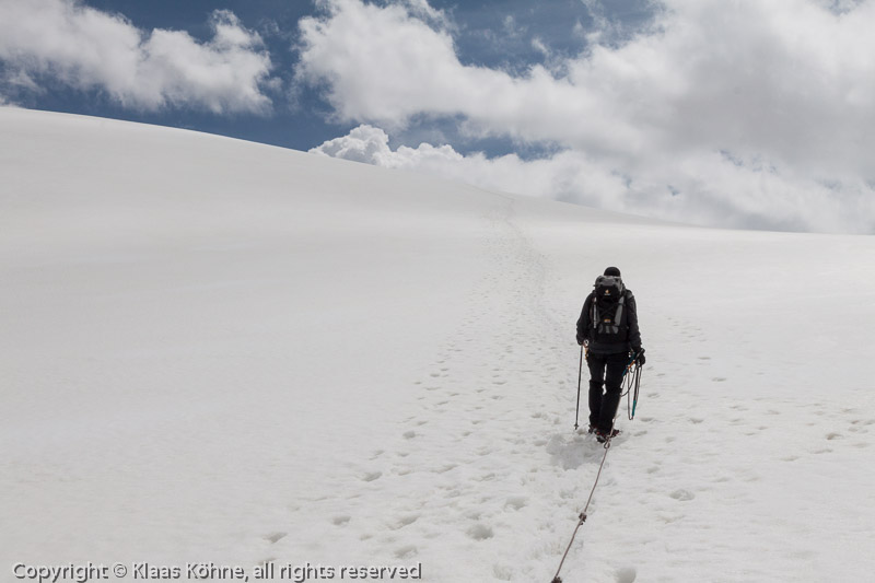 Der lange Schneehang zum Feekopf