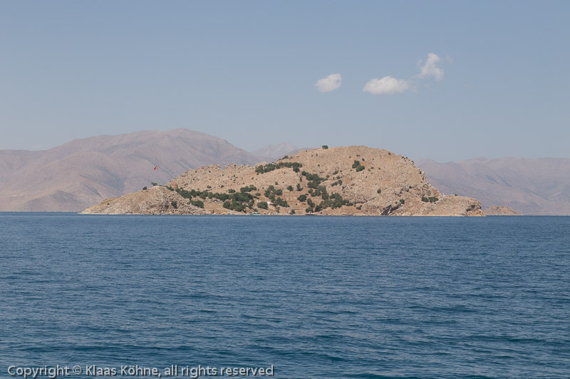 Langsam kommt die Insel näher. Hat was von Mittelmeer hier, dabei fahren wir auf einem 1700m hoch gelegenen See in Anatolien. OK, die Mittelmeer-Assoziationen hatte ich ja auch schon am Titicacasee und der liegt noch über 2000m höher...