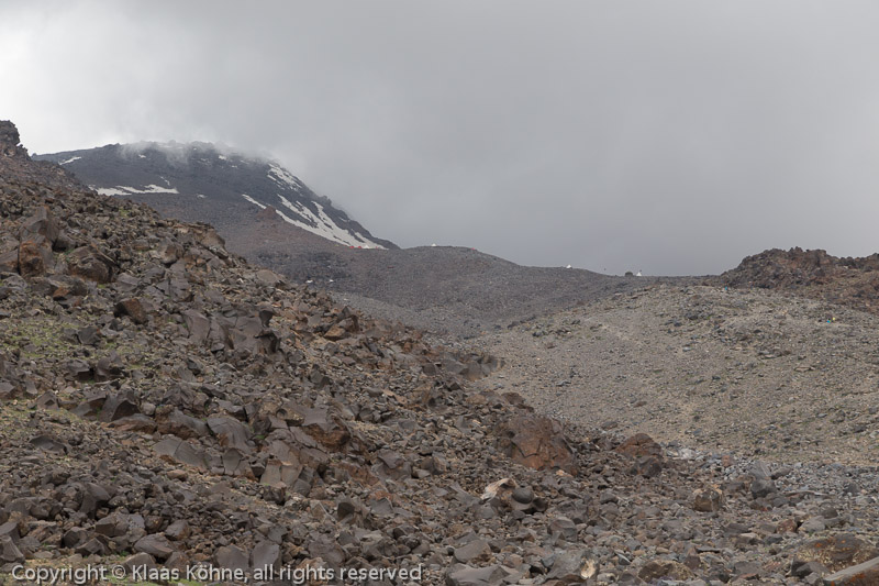 Blick hinauf zum Hochlager. Morgen geht´s da wieder hin - mit mehr Gepäck als heute...