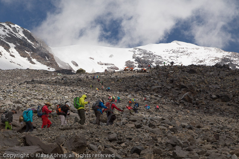 Immer wieder Blicke zurück nach oben. Der Gipfel ist immer noch frei - na sowas!