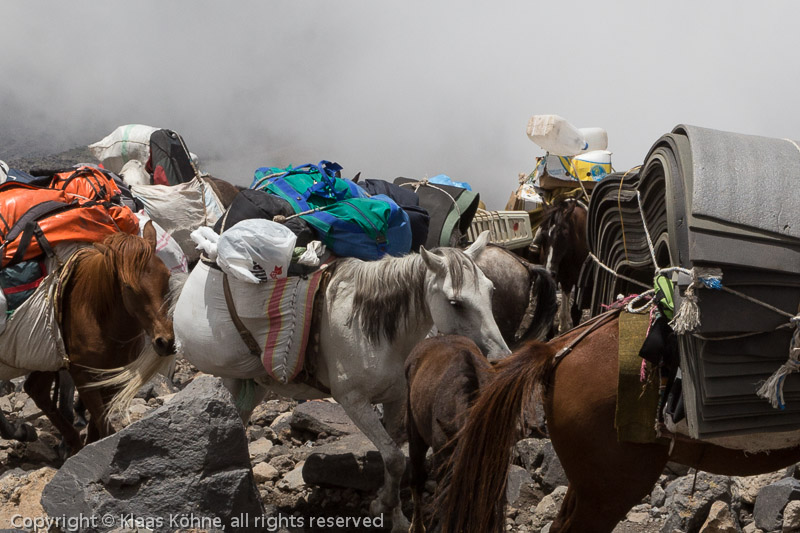 Ob all der Krempel wirklich nötig ist? Jedenfalls scheinen höchstens fünf Prozent der Touristen ihre persönliche Ausrüstung selber zu tragen. Solange meine Knie das noch einigermaßen mitmachen, will ich das aber weiterhin tun. Aber wie schon erwähnt, ganz unschuldig kann ich den Tieren auch nicht in die Augen sehen...