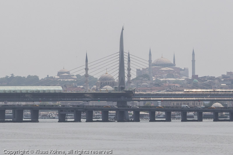 Brücken über das Goldene Horn. Hinten rechts unverkennbar die Hagia Sophia.
