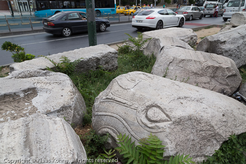 Diese wenig beachteten Steine am Straßenrand sind Fragmente des römischen Theodosiusforums und über 1600 Jahre alt.