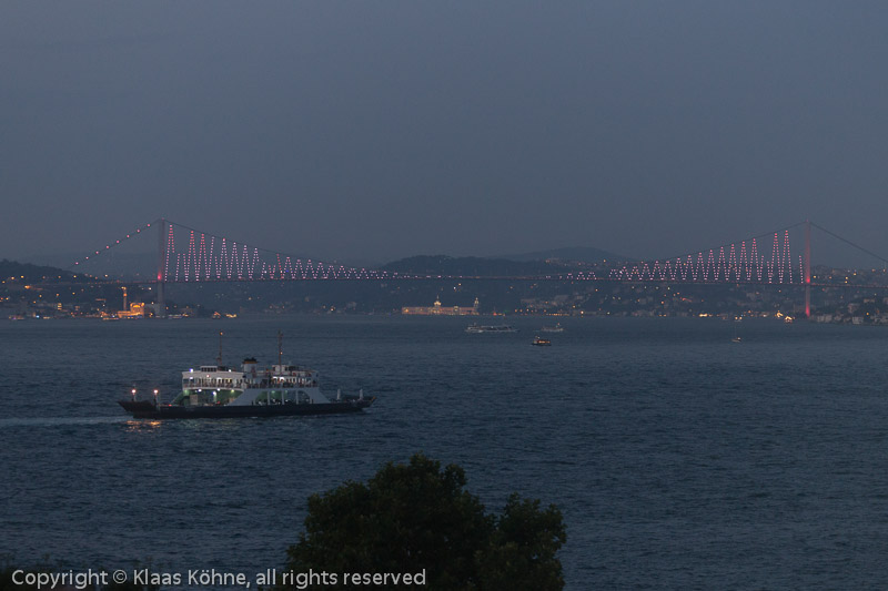 Langsam wird es dunkel und die Atatürk-Brücke startet ihre Lightshow.