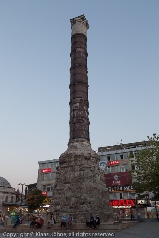 Die ist die sogenannte Konstantinssäule (Cemberlitas = bereifter Stein) aus dem Jahre 328. Seit 1779 ist die Säule mit starken Eisenreifen gesichert, wodurch sich ihr heutiger türkischer Name erklärt.