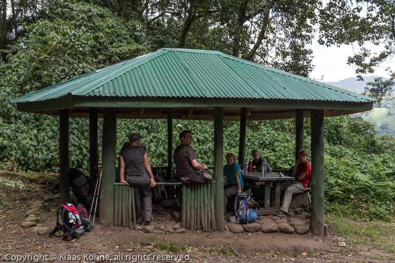 Pause in einem Unterstand knapp vier Stunden nach dem Aufbruch vom Dorf. Unsere "schnelle Fraktion" (aka Marcus und Heiko) ist schon weit voraus, vermutlich schon fast an der ersten Hütte.