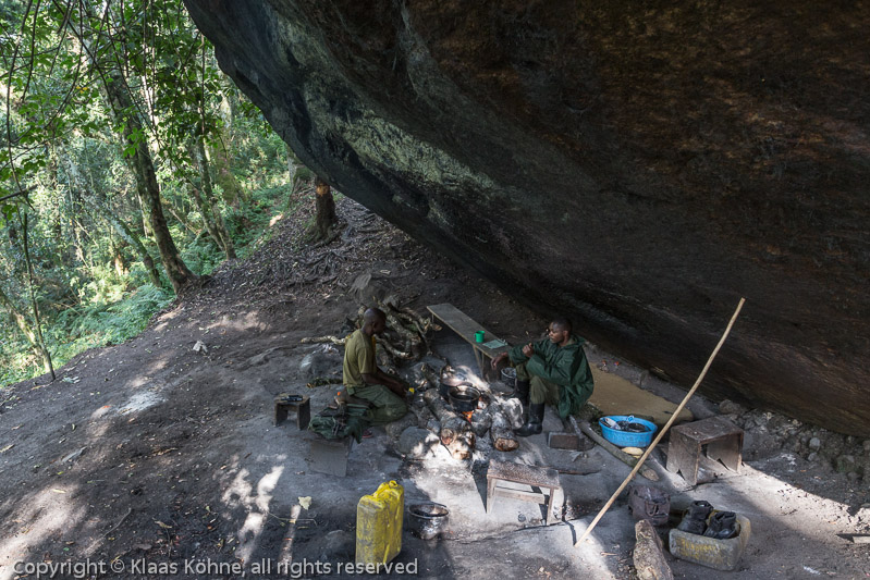 Dieser Felsüberhang liegt schon unmittelbar bei der Nyabitaba-Hütte. Früher wurde hier auch übernachtet, heute wird nur noch gekocht.