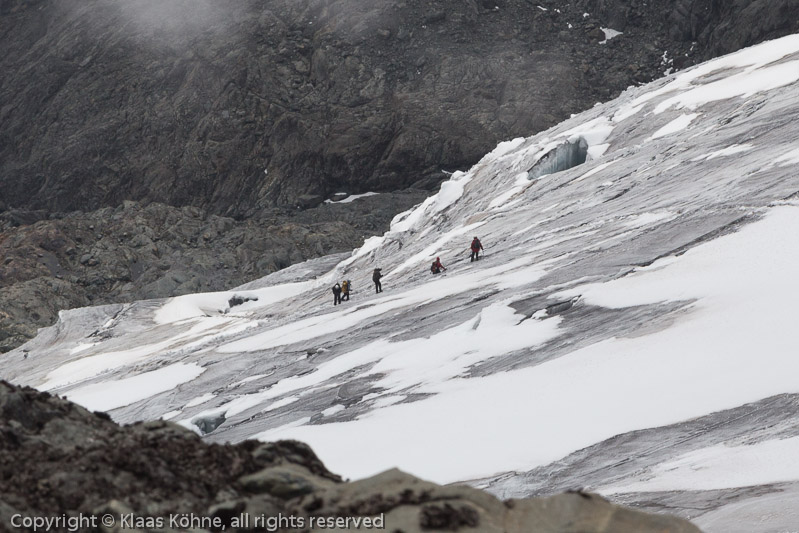 Die Gruppe von vorhin im Abstieg. Das Gelände ist übrigens deutlich steiler, als es hier den Anschein hat.