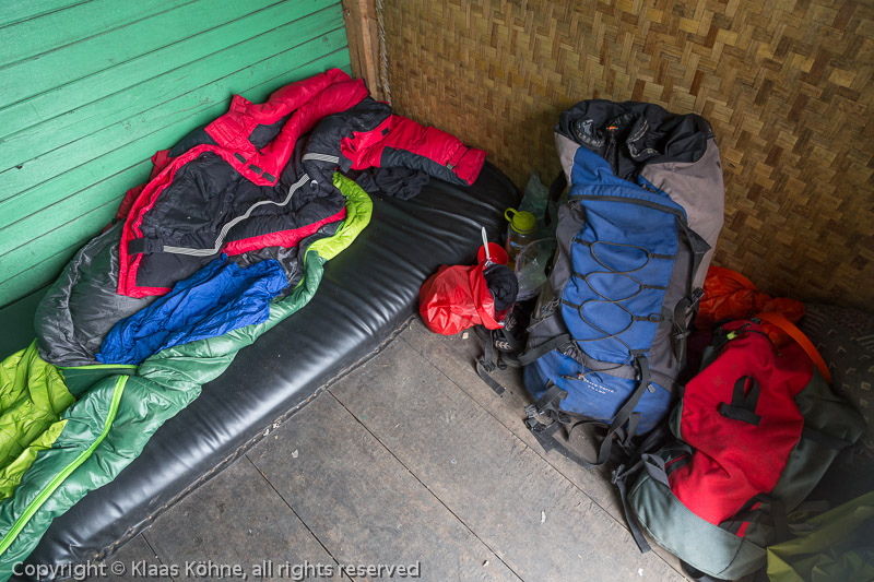 Um kurz vor halb zwei bin ich wieder bei meinen Klamotten. Die anderen sind schon weiter in Richtung Kitandara Hut abgestiegen, aber ich brauche definitiv ein Päuschen.