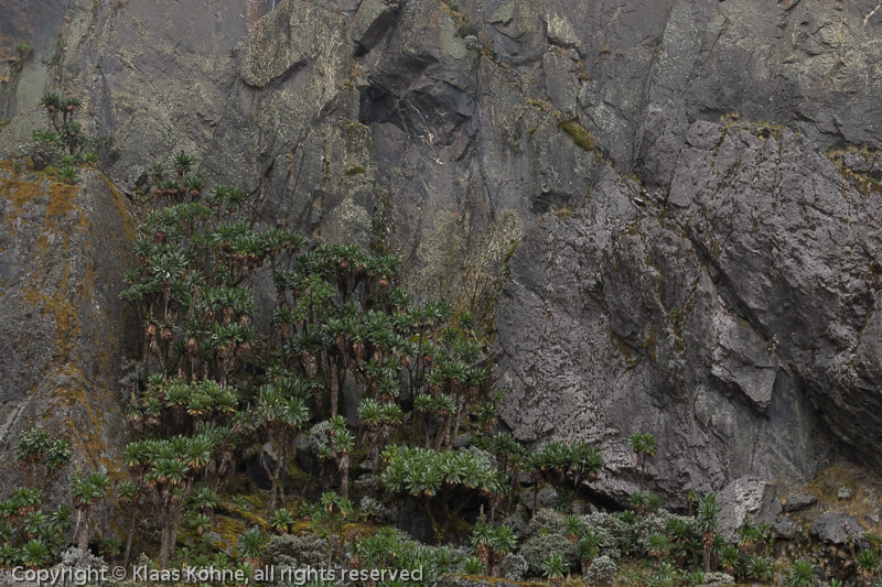 Einige Senecien haben sich direkt an der Felswand angesiedelt.
