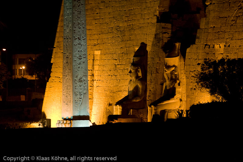 Obelisk und Kolossalstatuen von Ramses II. am Eingang des Luxor-Tempels