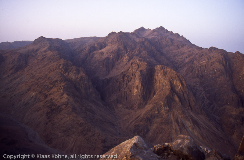 Blick hinüber zum Katharinenberg, dem Gebel Katerina. Mit 2642m ist er der höchste Berg Ägyptens. Da will ich morgen noch hin.