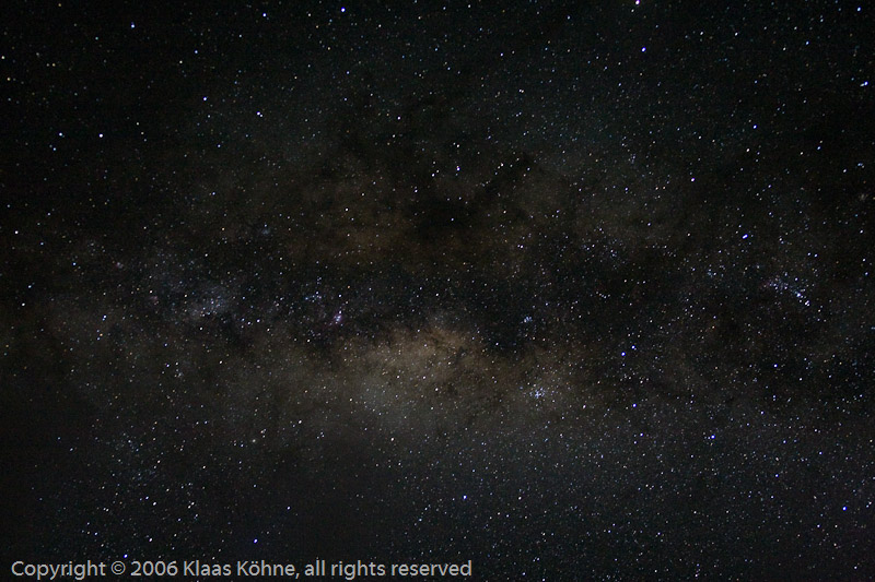 Blick auf das Milchstraßenzentrum in 30.000 Lichtjahren Entfernung. Auch die scheinbaren "Wolken" bestehen aus Millionen von Sternen. Wenn man sich das Ganze noch dreidimensional vorstellt, kann man schon etwas den Boden unter den Füßen verlieren...
