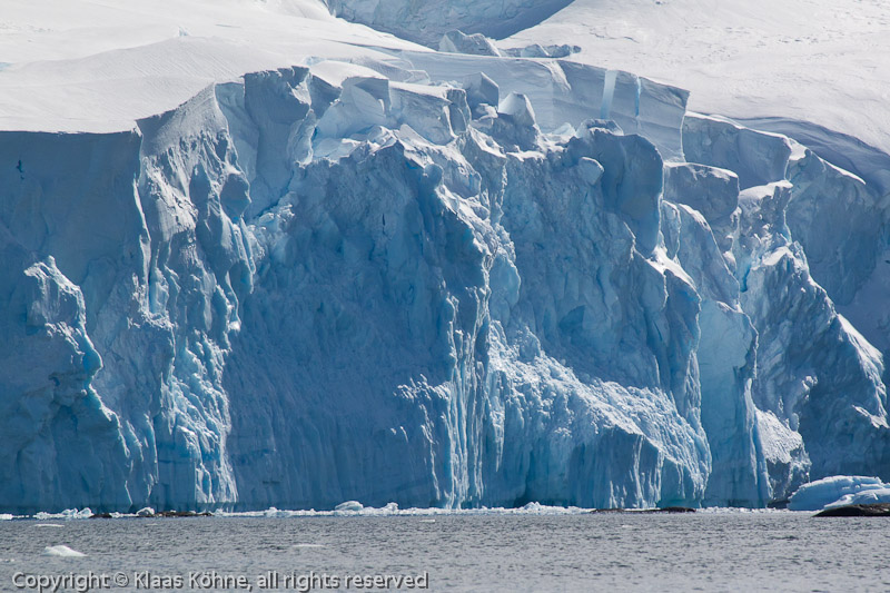 Blaue Eiswand eines ins Meer kalbenden Gletschers auf Trinity Island.