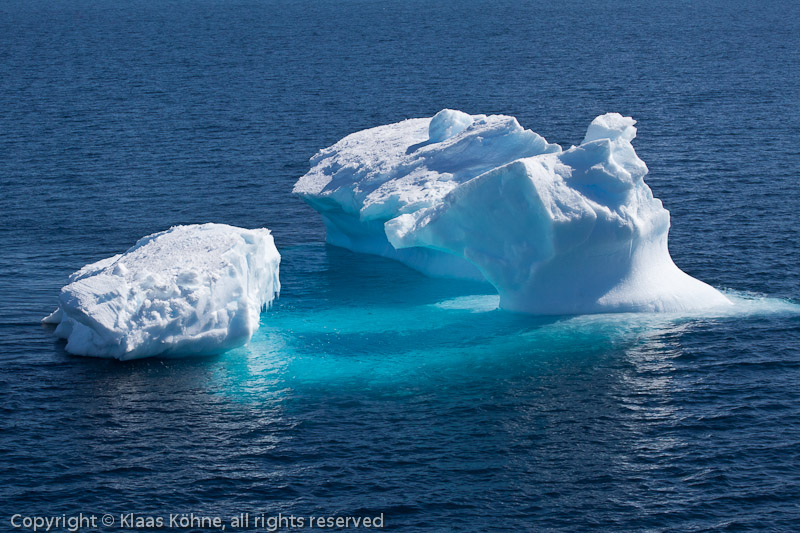 Sonnenbeschienener dreiteiliger Eisberg in der Gerlache Strait.