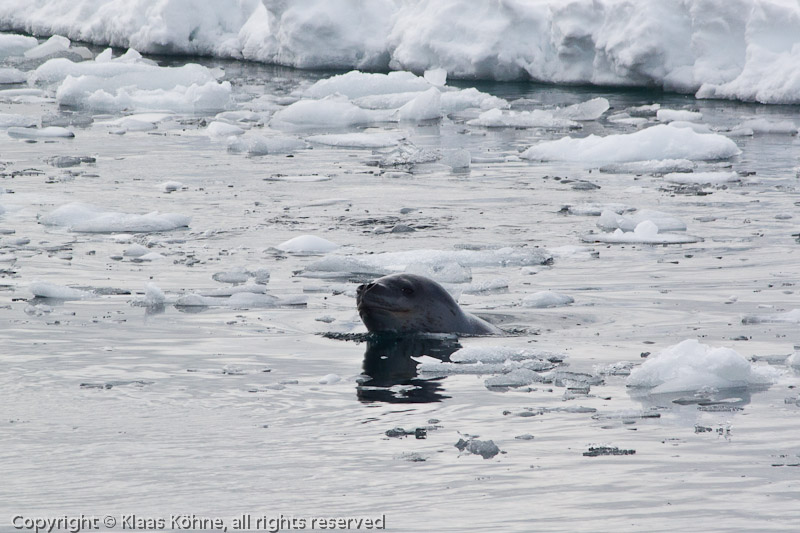 Der schon! Ein Seeleopard (Hydrurga leptonyx) lauert auf Beute.