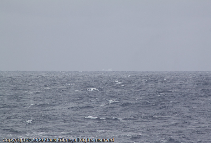 Die See hat sich wieder etwas beruhigt. Am Horizont ist der erste Eisberg zu sehen.