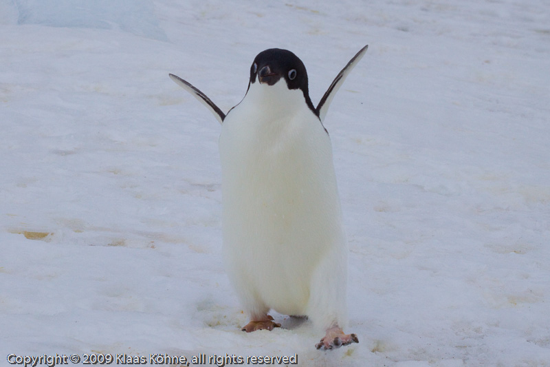 Hurra, ein Adeliepinguin (Pygoscelis adeliae)!