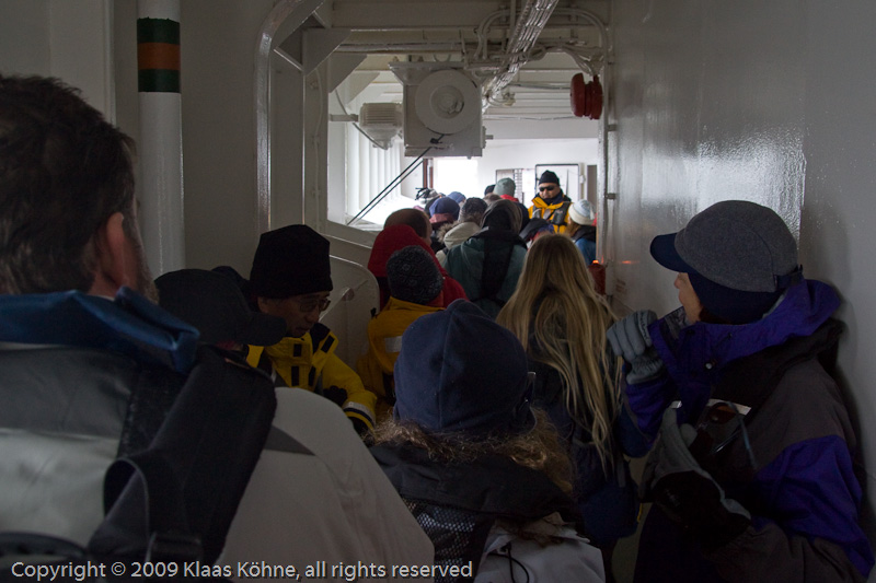 Im Wartetunnel vor dem Besteigen der Schlauchboote