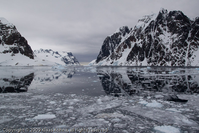Langsam gleiten wir durch den Lemaire Channel. Oft ist er durch dicke Eisbrocken verstopft und ich hatte vermutet, dass die Durchfahrt so früh in der Saison noch nicht möglich sein würde.