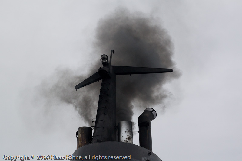Die Orlova (Baujahr 1976) fährt leider nicht sehr emissionsarm. In ein paar Jahren sollen die älteren Antarktis-Schiffe durch umweltfreundlichere Modelle abgelöst werden.