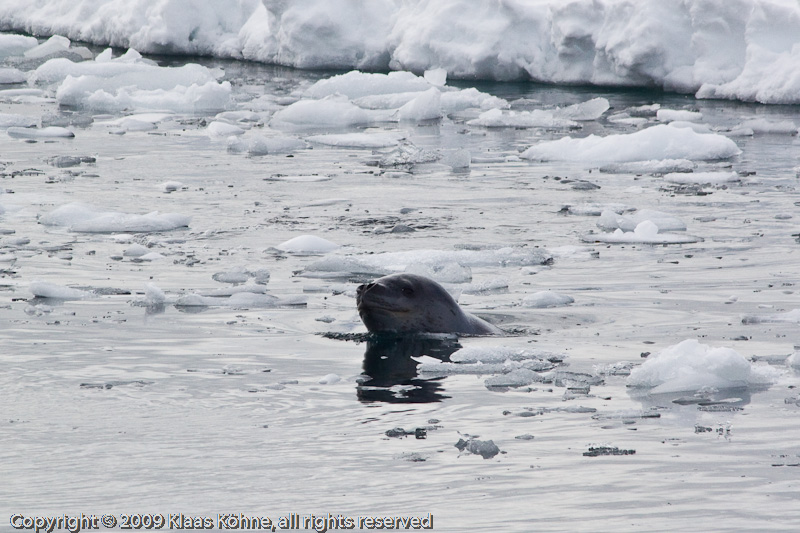 Der schon! Ein Seeleopard (Hydrurga leptonyx) lauert auf Beute.
