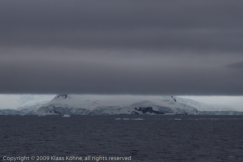 Teile von Anvers Island unter der tiefen Wolkendecke. Ich fotografiere und fotografiere, so als ob ich dadurch irgendetwas festhalten könnte. OK, es war keine Tour in den Weltraum, es war nicht mal eine richtige Expedition - und doch war es eine unvergleichliche und unwiederholbare Erfahrung, diesen Teil meines Heimatplaneten in "geistigen Besitz" zu nehmen. Noch einmal wird mir sehr bewusst, wo ich mich befinde.