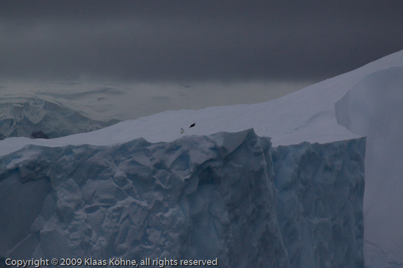 Zwei Zügelpinguine auf einem Eisberg. Es kommt mir vor, als ob sich die Antakrtis durch sie von mir verabschieden will...