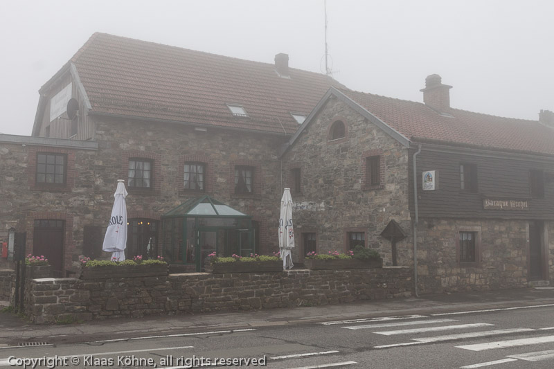 Ortswechsel zur Baraque Michel. Die erste Hütte wurde hier schon 1808 errichtet. Um Menschen zu helfen, die sich im Venn verirrt hatten, wurde jeden Abend eine Glocke geläutet. Mehr als hundert Personen konnten so gerettet werden.