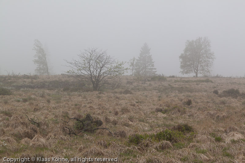 Nach der Stärkung trauen wir uns hinaus in das neblige Venn. Ist schon eine ganz besondere Atmosphäre. Man kann sich gut vorstellen, wie leicht man sich hier verirren konnte bzw. kann.