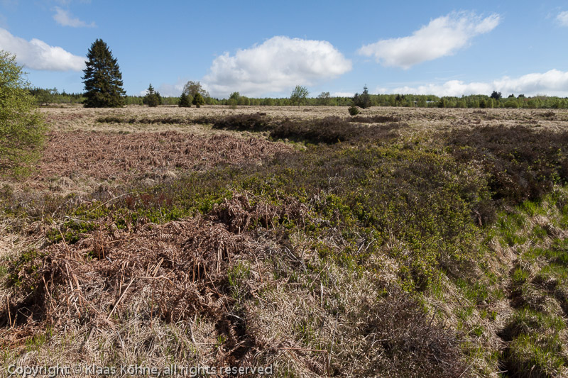 Die einzelnen großen Fichten, die sich auf dem sauren Moorboden halten, wurden von den Preußen eingeführt und heißen deswegen im Volksmund "Prüüßeboom".