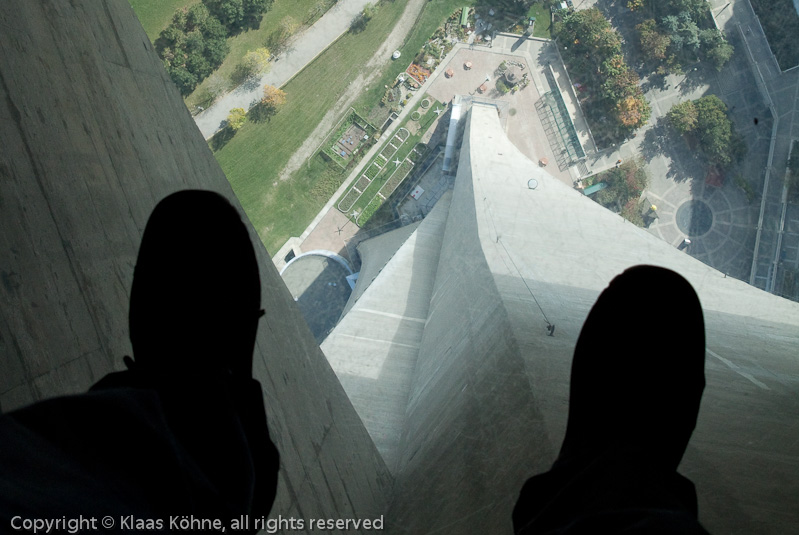 Blick durch den 7cm starken Glasboden des CN-Towers nach unten.