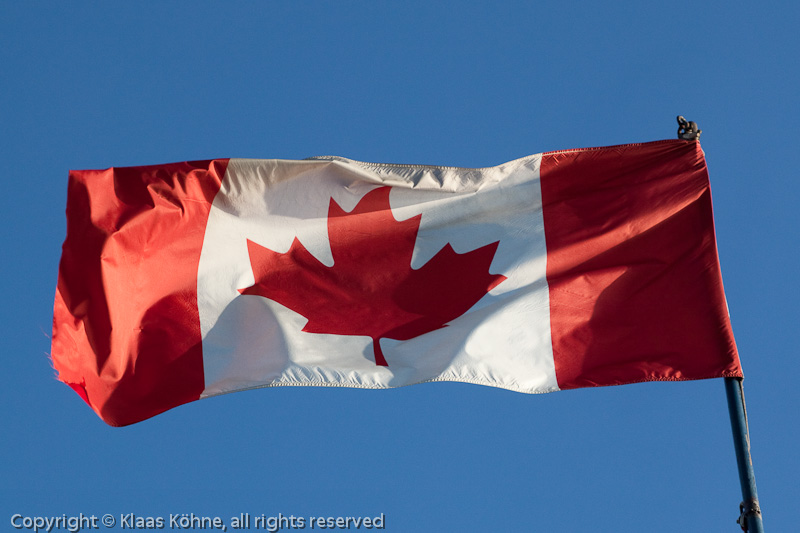 Die kanadische Flagge. Und in 24 Stunden bin ich schon in Chile. Es beginnt die übliche Abschiedsmelancholie...
