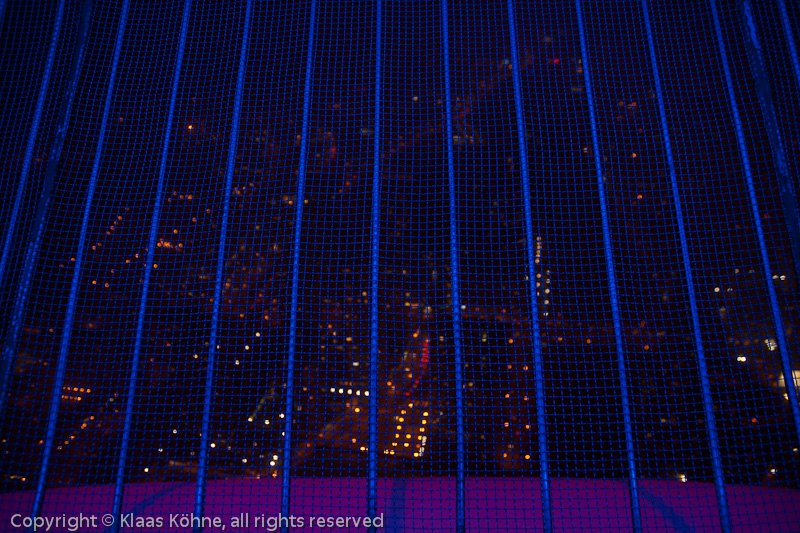 Blick durch´s Gitter nach unten. Und dann schnell wieder rein in die Wärme.